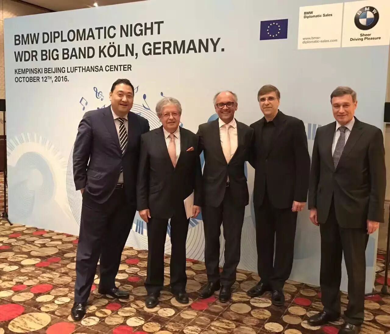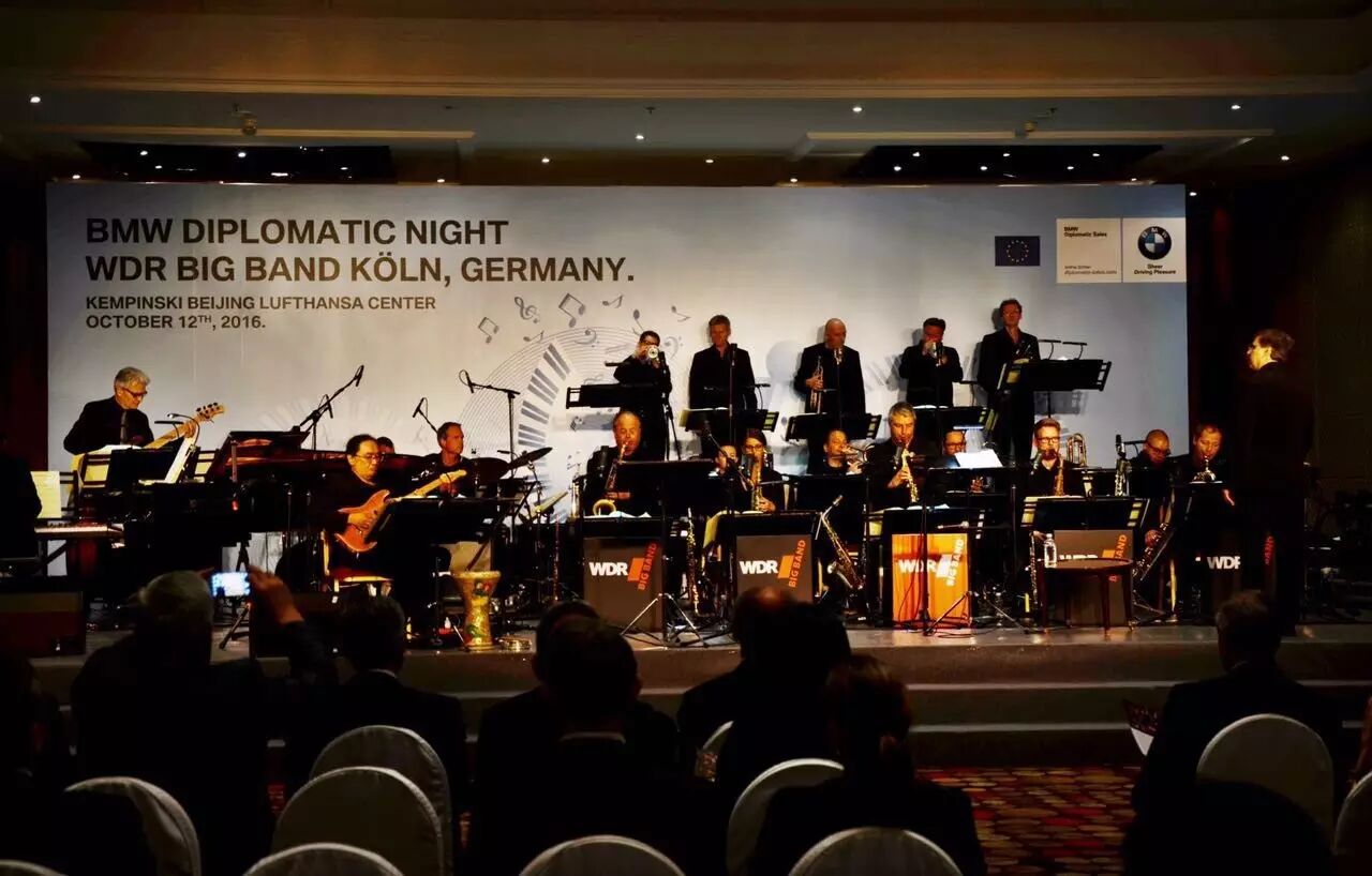 10月12日晚科隆西德广播爵士大乐团在北京凯宾斯基燕莎中心亮相,作为“宝马2016外交官之夜”的特别表演嘉宾,乐团为各国来宾、使节带来了一场美妙别致的爵士音乐会。