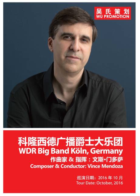 名扬国际的科隆西德广播爵士大乐团在吴氏策划的邀请下于本月首次访华。在其乐团大将——格莱美获奖者、爵士界炙手可热的作曲家兼指挥家文斯·门多萨的带领下,科隆西德广播爵士大乐团于10月11日抵达北京,展开了为期11天的中国巡演之旅。