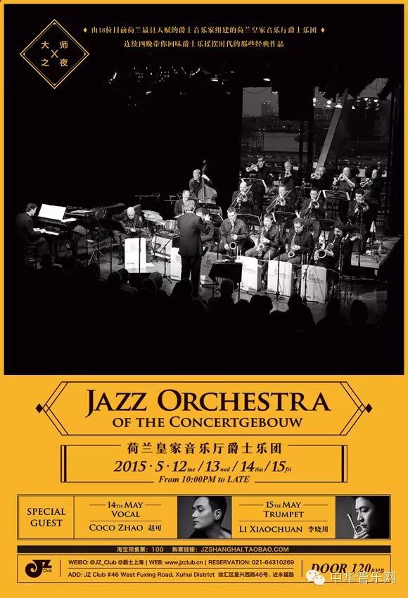 特别要推荐的是,本次荷兰皇家音乐厅爵士乐团在JZ Club的演出将会和国内的爵士音乐家合作: