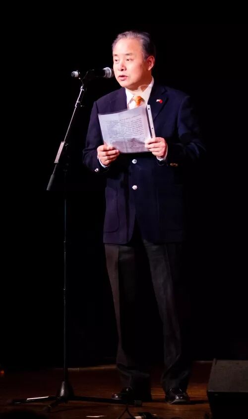 晚会开始前,中国驻美使馆教育处岑建君公参致开幕辞,,向与会的嘉宾及学子寄予了对新一年的美好祝福。