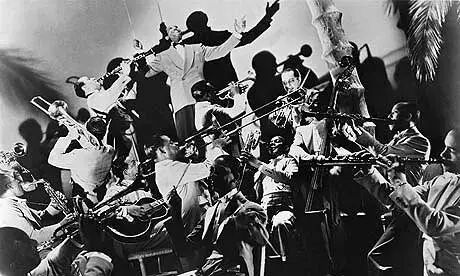 到1930年,Duke Ellington乐团成为家喻户晓的名字。《Mood Indigo》成为他在世界范围内的大热乐曲:铜管乐器与木管乐器针锋相对的运用,以及通过优雅的编曲对简单旋律的增强,揭示出一位传奇爵士乐作曲家的出现。1931年的《Creole Rhapsody》,进一步以爵士乐从未曾经尝试过的形式制定了独奏家的即兴演奏。听一下这首曲子,感受一下。