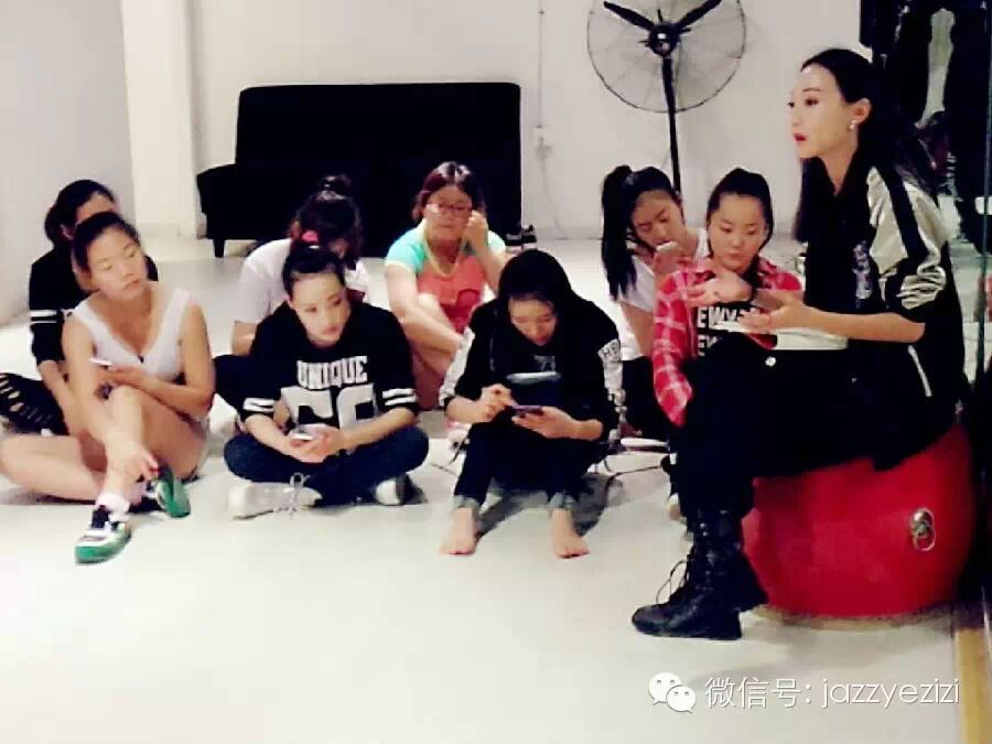 叶子子品牌爵士教学课堂特别开设了每周日编舞表演学习内容。专门针对提高学生们的编舞技法及启发即兴表演潜能。在刚刚完成的即兴编舞教学内容中,叶子子老师给出一段音乐,指定几位同学根据这段音乐的节奏带入自己的情感理解进行即兴演绎,开始,叶子子老师对五位学生的表现并不满意,指出各自在即兴表演中出现的问题,像舞蹈动作表达模糊,情绪把控不到位,情感理解不够透彻等。叶子子老师说,即兴编舞首先就是训练自己分析理解音乐的能力,定位音乐的风格,分析节奏的特点,这样才能进一步把握音乐情感的走向,避免出现表达方向和音乐风格不符或者脱节的情况。