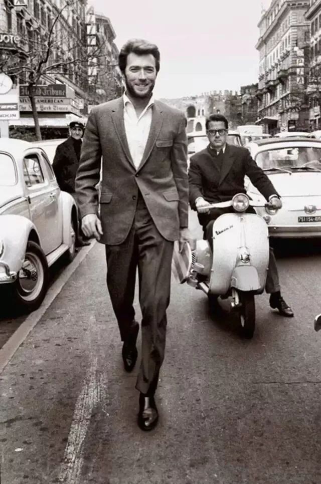 ▼ 克林特·伊斯特伍德走在罗马的街道上,1960年