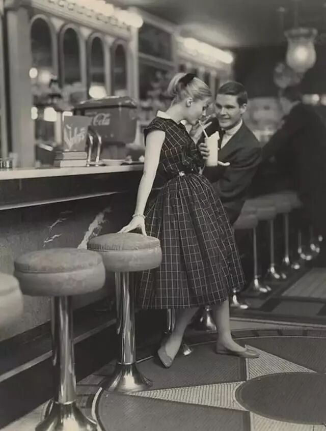 ▼ 巴黎剧院里的一对年轻情侣在爵士乐伴奏下翩翩起舞,1951年