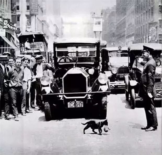 ▼ 纽约街头因猫妈妈而停止的交通,1925年