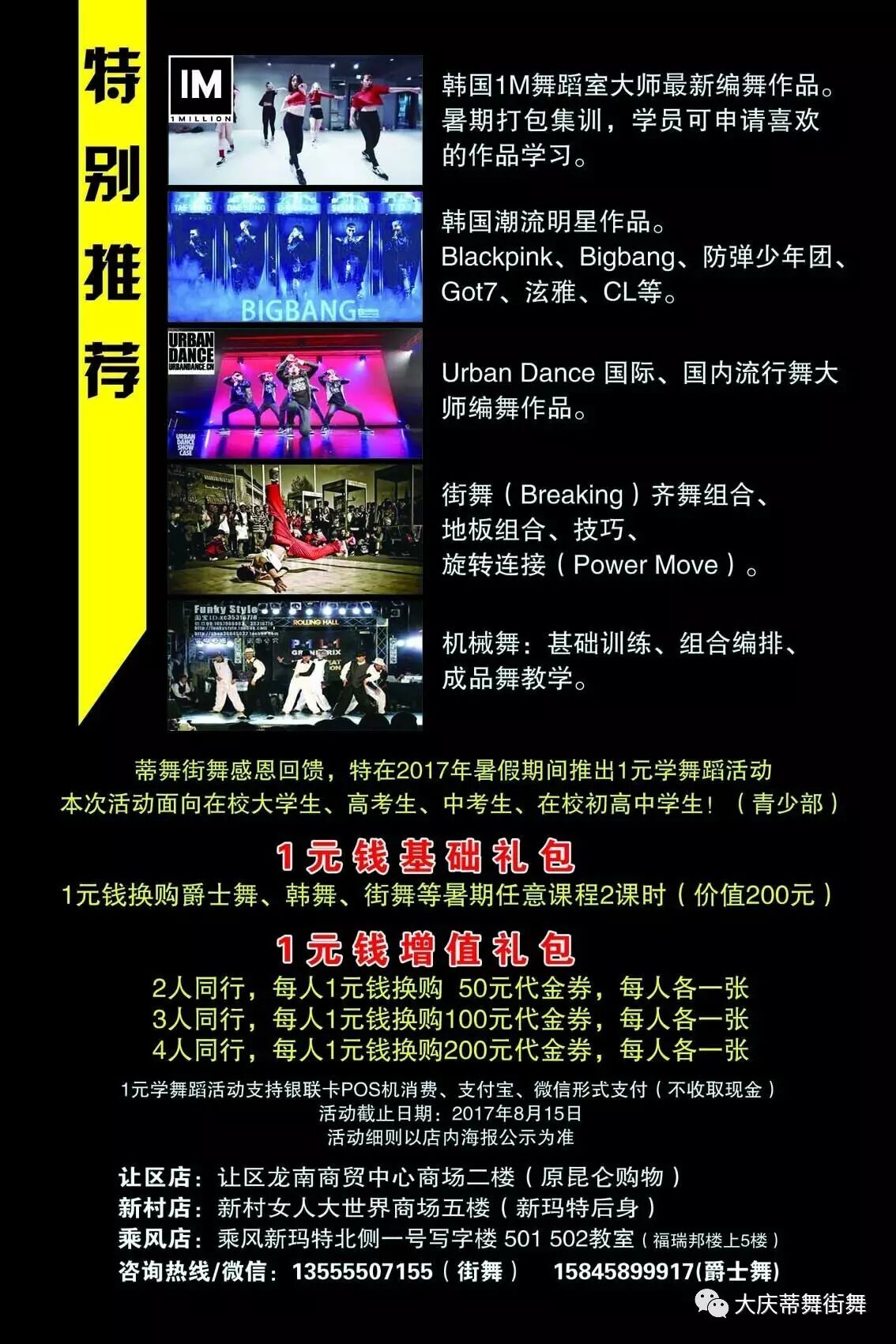 感恩钜惠,倾情回馈。2017年暑期蒂舞街舞(青少部)为有意愿报名的青少年学生们,准备了丰富的礼包课程。只需转发朋友圈5天即可1元换够(基础礼包+增值礼包)