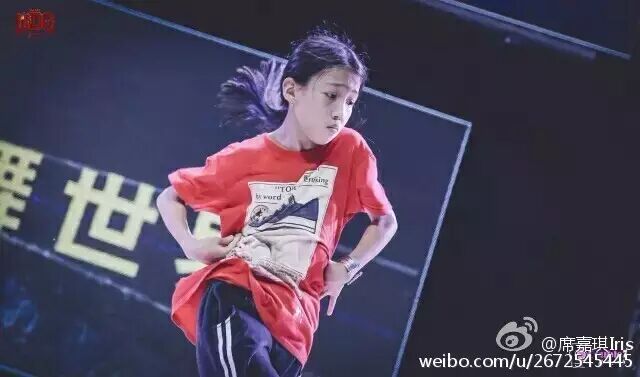 面对一众世界街舞高手的小女孩