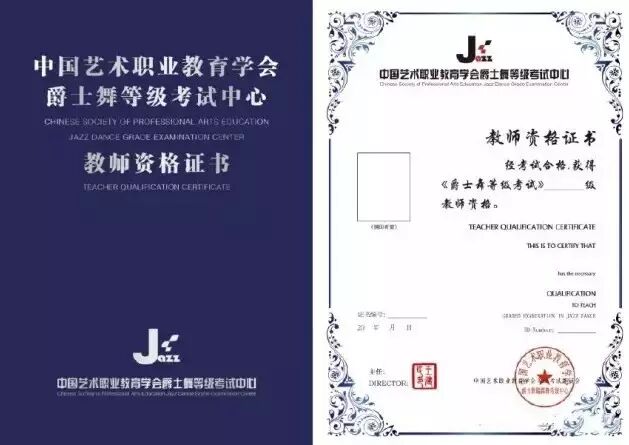 2、中国艺术职业教育学会爵士舞等级考试中心《教师资格证书》(教师):