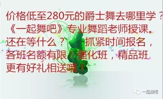 暑期做什么好?走进【一起舞吧暑期爵士零基础360°专业密训】全方位打造,圆梦之旅,破茧成蝶,重新蜕变 对自己没有自信 认为自己不够美丽 零基础羡慕美丽的舞者 有舞蹈梦想不敢尝试 来《一起舞吧》塑造,我们已成就了太多人,不再让美丽埋没,您只需要踏出第一步