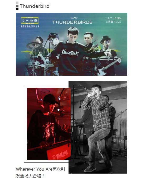 Thunderbird的贝斯手中哥即将坐上定点班车离开奉大荒,这只翱翔了两年的雷鸟也终于要歇一歇了,相信最近两届的奉贤的学生对于这只雷鸟不会陌生,几乎在各大晚会上都能看到这只雷鸟尽情飞翔的身影,突然的落地也许会给人们带来一些伤感,不过相信会有更多像雷鸟一样赞的乐队继续为大家带来神经的刺激。
