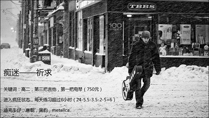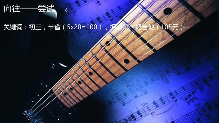 初二,老野在同学家看见一把和VCD里一样的东西,就被了。他开始知道原来这个东西叫做吉他。从此经常以找(耍)这位同学玩(心机)的借口(明目张胆),去他家玩吉他。而这位同学其实只会Do re mi fa so