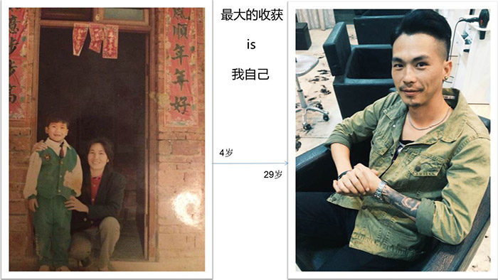 左图是4岁的野男孩,右图就是如今的野男人。音乐之于老野来说最大的收获是成就了他自己,让他成为了现在的自己。