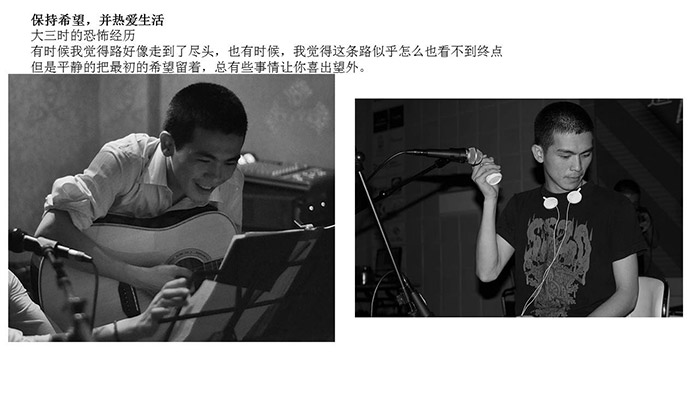 有了满足的新琴,他开始疯狂的练琴,因此大四的时候被留级了,别人一学期只有两三门课的时候他却要上十二节课。但是,执迷不悟的他,还是执迷,平常依然练琴,排练。考试前就去疯狂通宵复习。这时候陪伴他复习一起吃一碗麻辣烫的鸡鸡同学也成为了他一辈子的好基友。