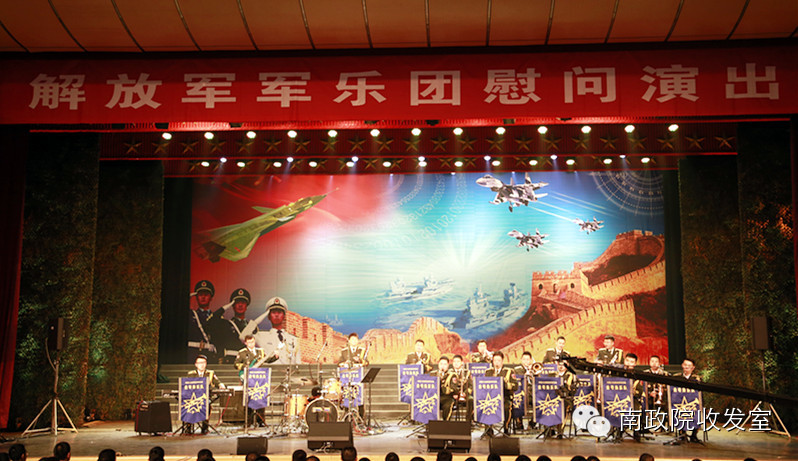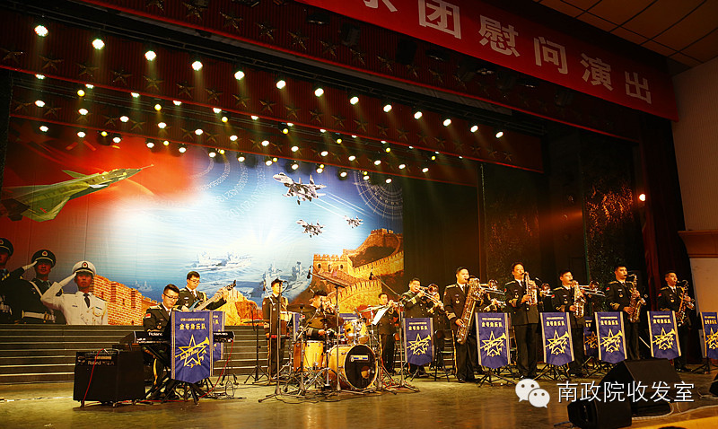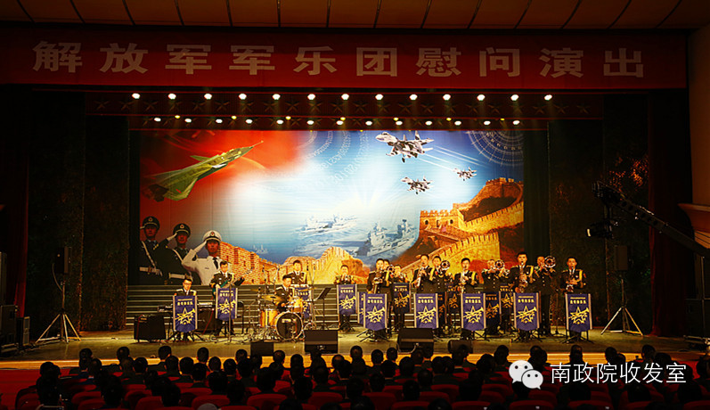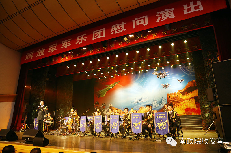南政院收发室 吴风华 报道:解放军军乐团于2015年1月5日至6日来学院慰问演出,驻宁部队领导、兄弟院校和共建单位领导参加了本次音乐盛会。解放军军乐团的艺术家们为我们带来了一场接地气、聚人气、扬正气的演出,带来了精彩纷呈、欢乐祥和的表演。既为我们奉上了一场艺术盛宴,更使我们凝聚起了团结一致的信心和力量!