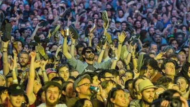 金色平原音乐节已经形成了一些古怪的传统,最著名的是扔靴子,如果喜欢音乐家的表演,可以往高处仍靴子致敬。脑补一下满地都是鞋的画面,你现在明白它为什么是个户外的音乐节了吗?(因为在室内会闻到臭脚丫子味)