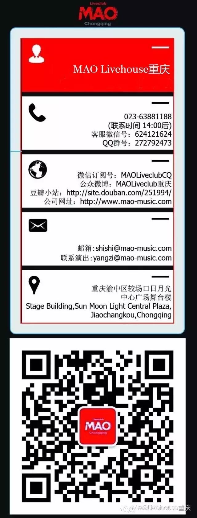 MAO Livehouse 微信号:MAO LiveclubCQ