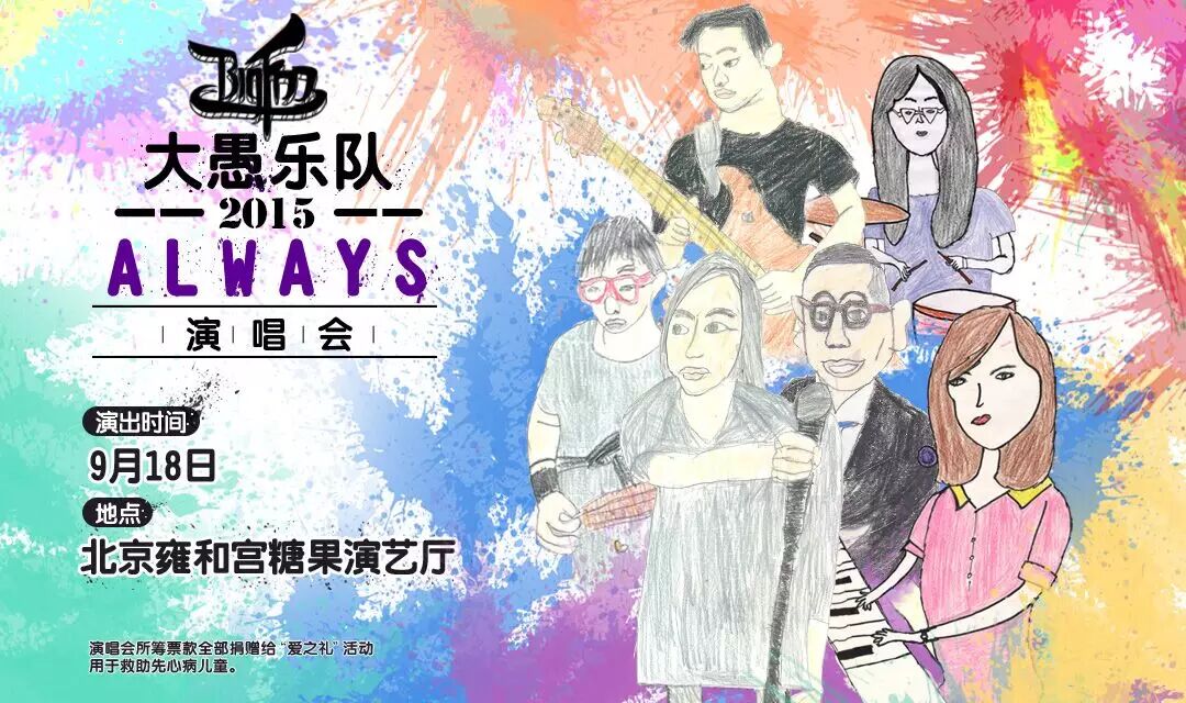 从2007年在东单酷乐唱片演出,到2012年在ChinaVenture年会和创业家晚宴的致谢,曾经在投资创业圈久负盛名的“大愚乐队”在经历了长达三年的漫长蛰伏后,终于宣布复出。这支最懂互联网的摇滚乐队将于2015年9月18日,在北京雍和宫糖果演艺厅举行ALWAYS演唱会,这也是大愚乐队第一次对外售票,全部收入将赠予“爱之礼”先心病儿童救助组织。