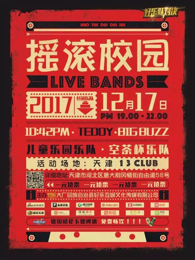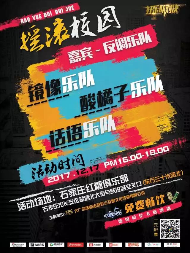 风尘弥漫,众多校园摇滚乐队纷纷应名参与好乐校园摇滚活动,12月17日,校园摇滚我们出发。Let's Rock N' Roll!
