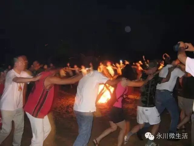 2、主持人带领全体人员分别围绕火堆手牵手跳开场舞(热身活动,活跃开场气氛,进入晚会状态);