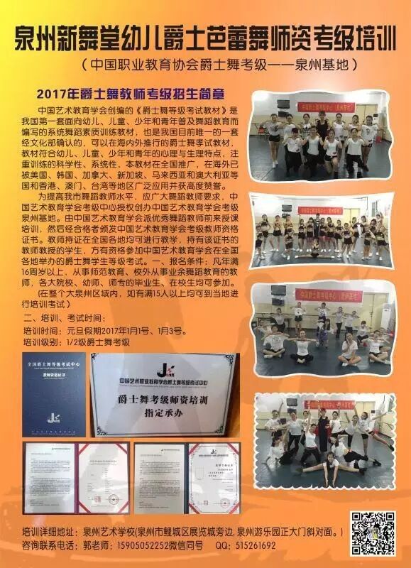 《元旦开班级别: 1~2级幼儿爵士舞考级师资班》
