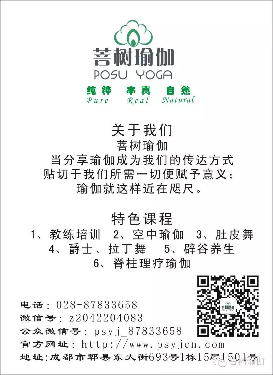 菩树瑜伽培训基地于09年在郫县成立,经过几年的发展,已经成为成都广为人知的瑜伽会所及培训基地,总建筑面积逾400平米,菩树瑜伽一直秉持着纯粹、本真、自然的瑜伽理念,为全国输送了万名专业教师,大大影响了中国瑜伽教练市场,以其正宗成熟的教学体系和实力强大的教学队伍著称,整个教学体系和教师队伍在国内具有很高的信誉度。