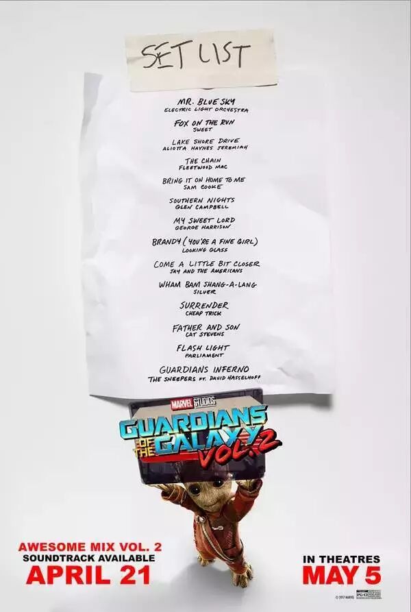 在《银河护卫队2》里,导演詹姆斯·古恩也精选了14首1970-1980年代的老歌。