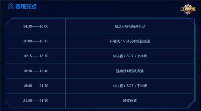 全球最专业且专注于游戏音乐演出的VGL(VIDEO GAME LIVE)乐团将在现场演奏《Our hero is back》。同时,中国顶尖摇滚乐队“逃跑计划”将助力王者荣耀总决赛,热力开唱《夜空中最亮的星》,带领我们穿越王者峡谷登上巅峰!除此之外还有360°全景地图直播实时体验召唤的快感!现场更有顶尖Cosplay团队与玩家现场互动!