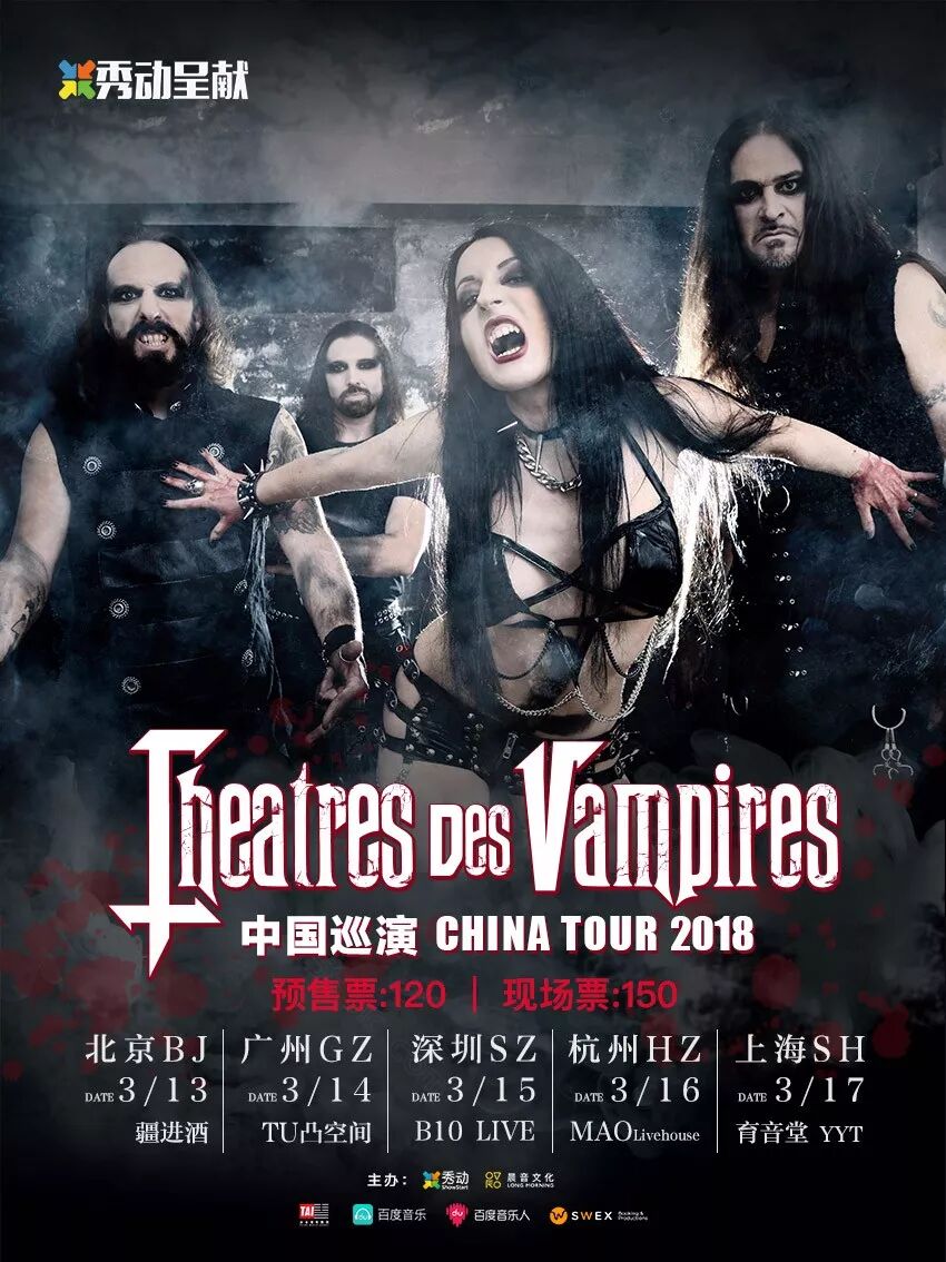 Theatres Des Vampire(吸血鬼剧院)是来自意大利的殿堂级金属乐队,哥特金属风格强烈。三月中旬,他们将首度来华,席卷国内五城!(购票请戳“阅读原文”)