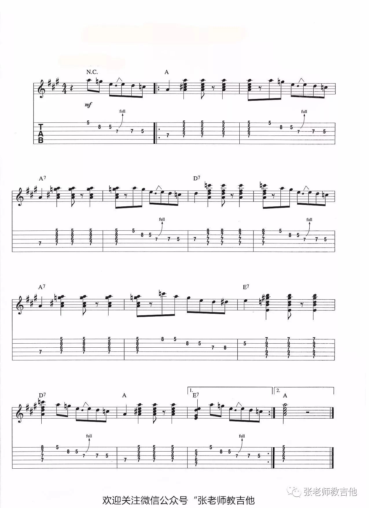 2----推弦。谱子中可以看出,此曲只用到全音推弦,我们需要提前练习好全音推弦的音准和在八分音符中的连接能力