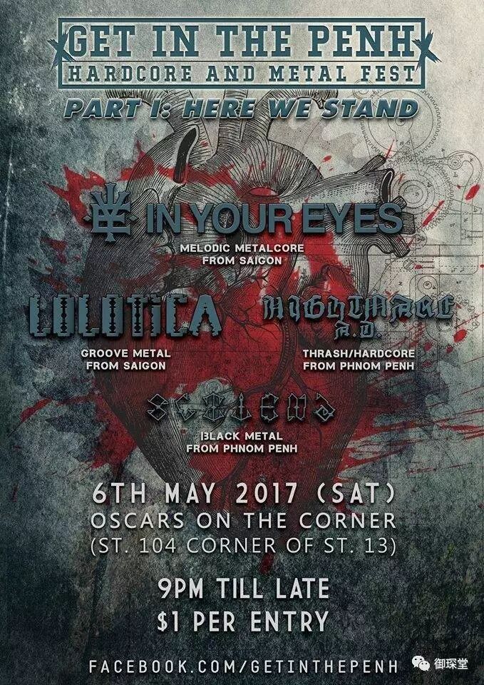 五月份6号柬埔寨乐队 Sliten6ix、Nightmare A.D. 与越南两支重金属乐队即将在柬埔寨金边酒吧 Oscar Bar 演出,喜欢重金属的朋友可以去看看,门票只 1 美金。