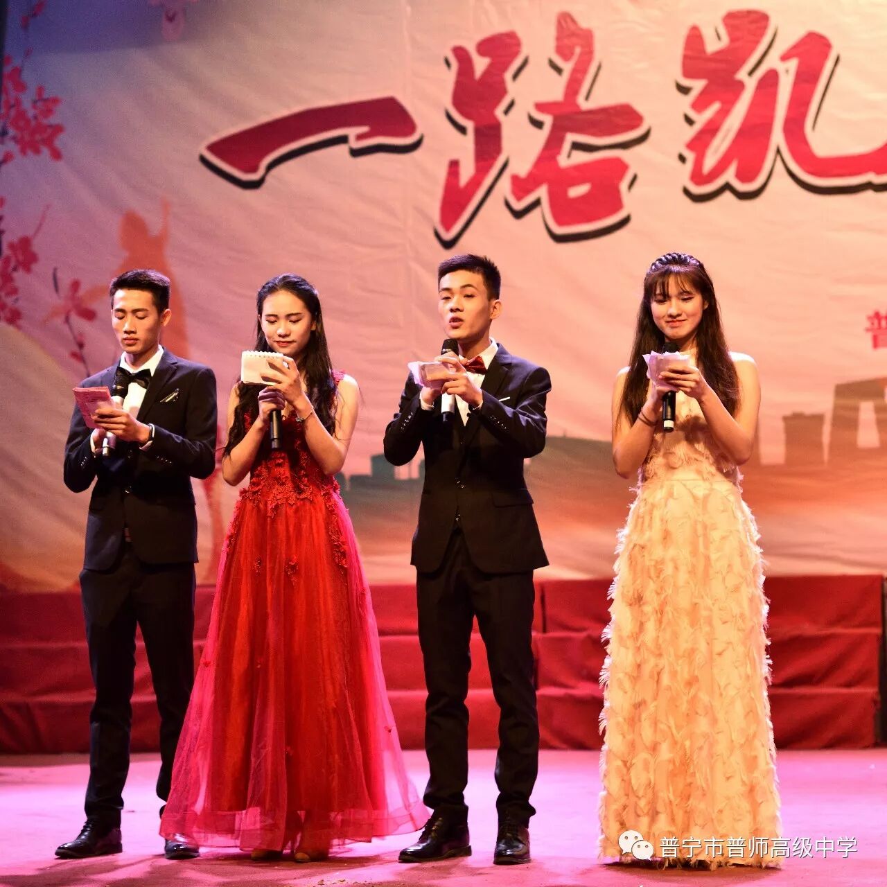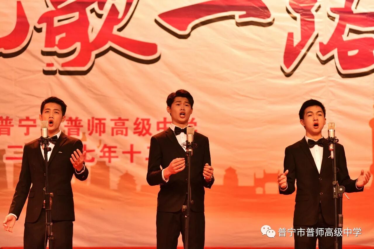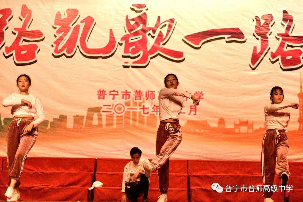 在辞旧迎新之际,为了喜迎元旦,丰富校园生活,展示学子风采,2017年12月25日下午,普师高级中学在大礼堂隆重举行以“一路凯歌一路春”为主题的2018年元旦文艺汇演。礼堂内灯光璀璨,人潮涌动,元旦文艺汇演的火热上演,给全校师生美的享受,现场弥漫着节日的欢快氛围。