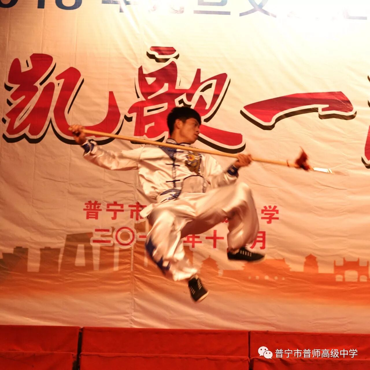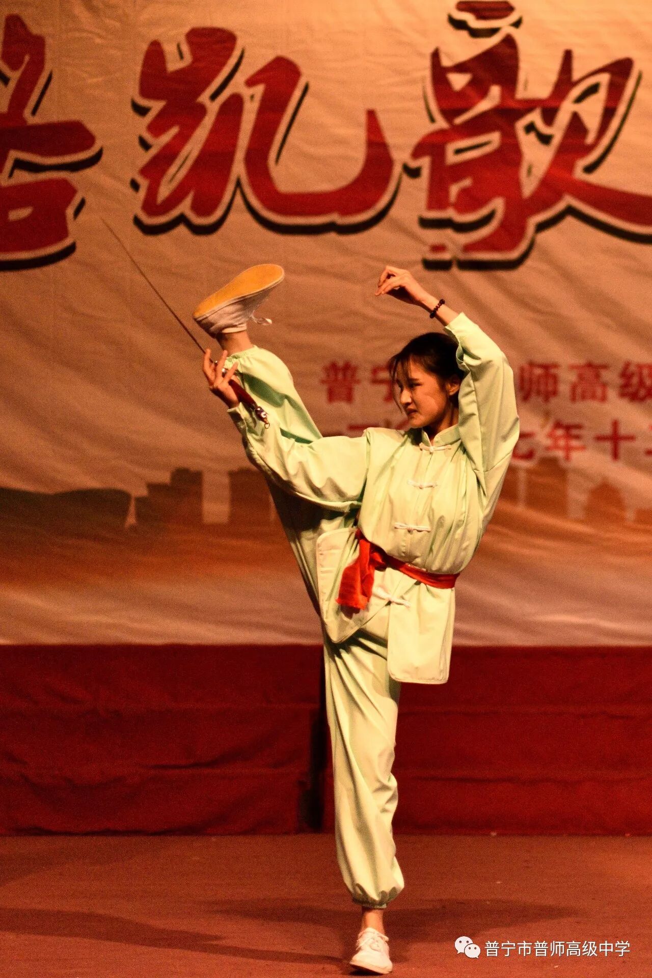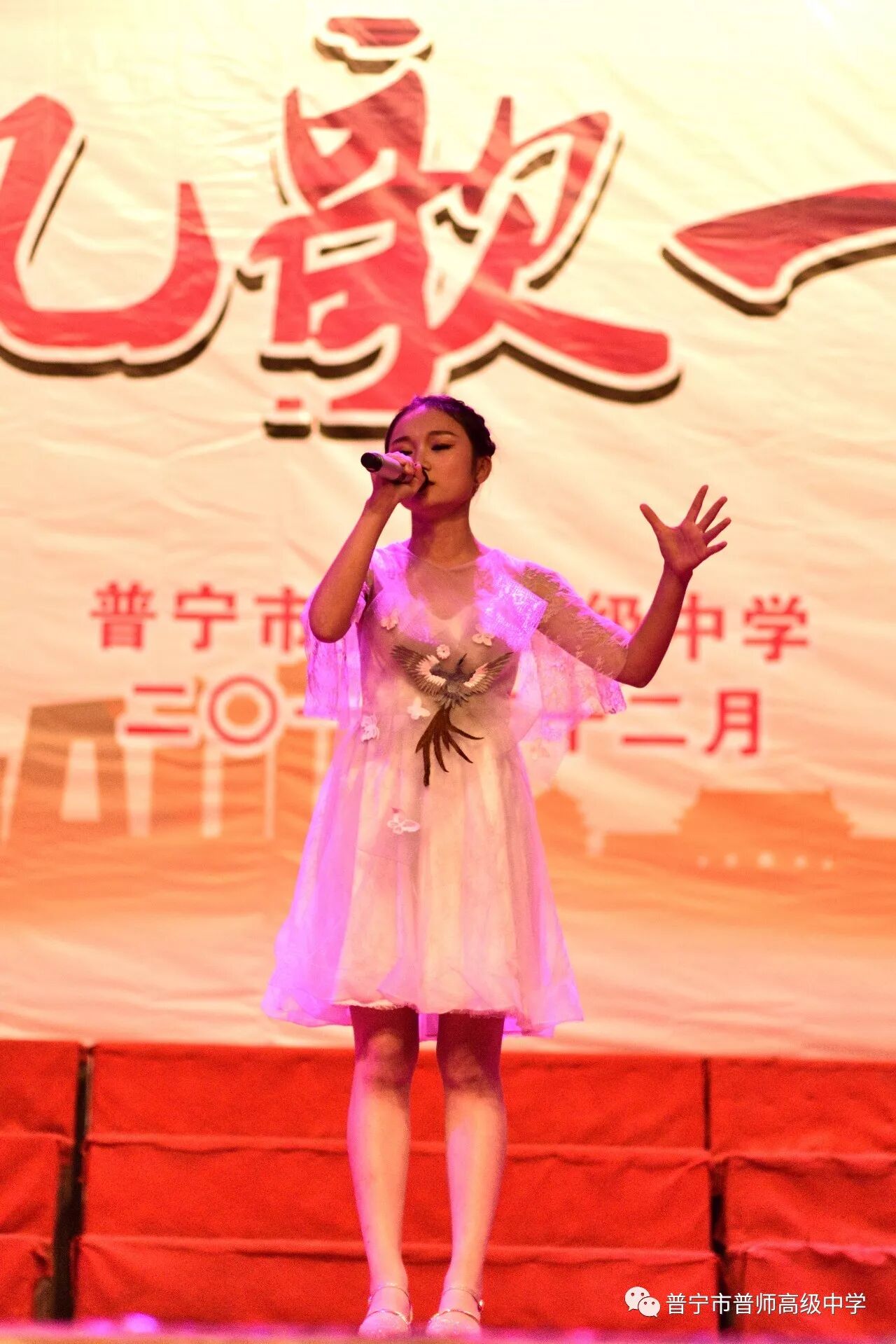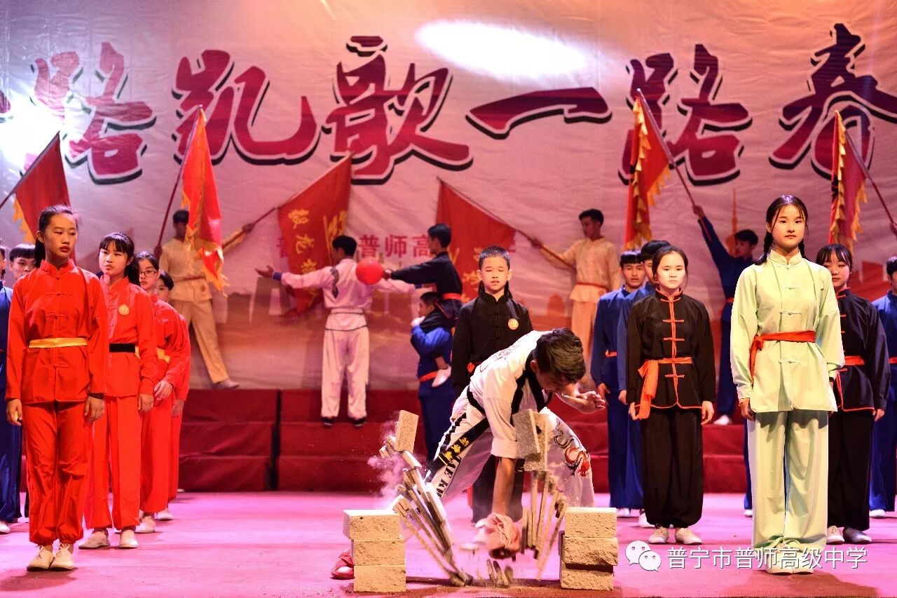 演出开始前,陈育鸿校长代表学校行政班子致欢迎词,总结了在师资紧张和外部招生压力的严峻考验下,过去一年普师高级中学取得的丰硕成果,一路凯歌高奏,近期学校学生更在普宁市教育局组织的男子篮球赛中取得了全市第六名的好成绩。校长的发言赢得了全校师生的热烈掌声。