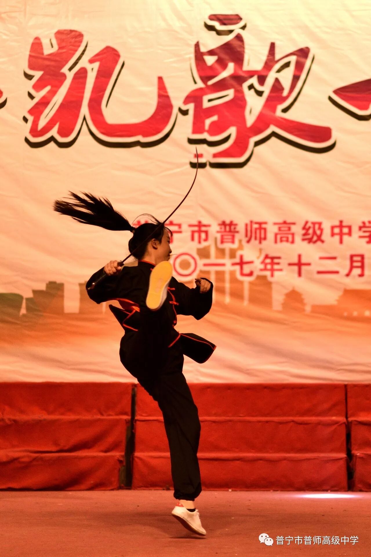 本次元旦文艺汇演,节目精彩纷呈,无不凸现了同学们积极向上、激情四射的青春活力,表演者扎实的功底,更展现了学校在艺术特长生培养方面取得的显著成绩。随着时间的推移,整场元旦文艺汇演在虎虎生风的压轴的武术表演中圆满落下了帷幕。