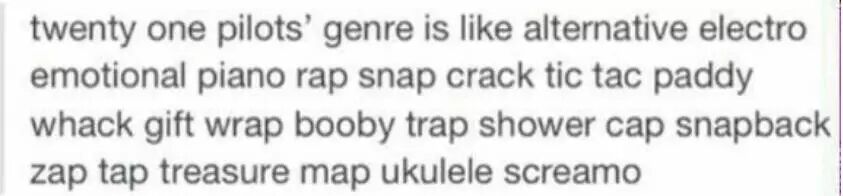 其实不光是你我,直到现在也没有谁能很好的说清楚21飞行员到底是一支什么风格的乐队(或者你还是把他们叫做“组合”?反正他们自己说自己是一支乐队)。