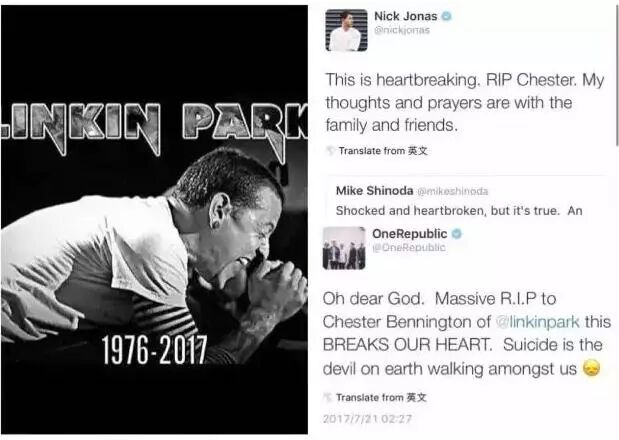 但不管怎么样,都感谢Linkin Park陪我们度过了那样一段时光。愿Chester Bennington 在天堂里如 《Given Up》里所唱到:Put me out of my misery.... 远离所有不幸,R.I.P.