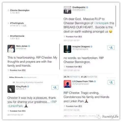 外网目前处在巨大的痛心疾首中,Rihanna、Chance the Rapper、Nick Jonas等艺人发推和ins悼念。OneRepublic发推悼念后更提醒网友,如果有倾向请及时寻求帮助。“如果你觉得这个世界没有你会更好,那你就大错特错了。”