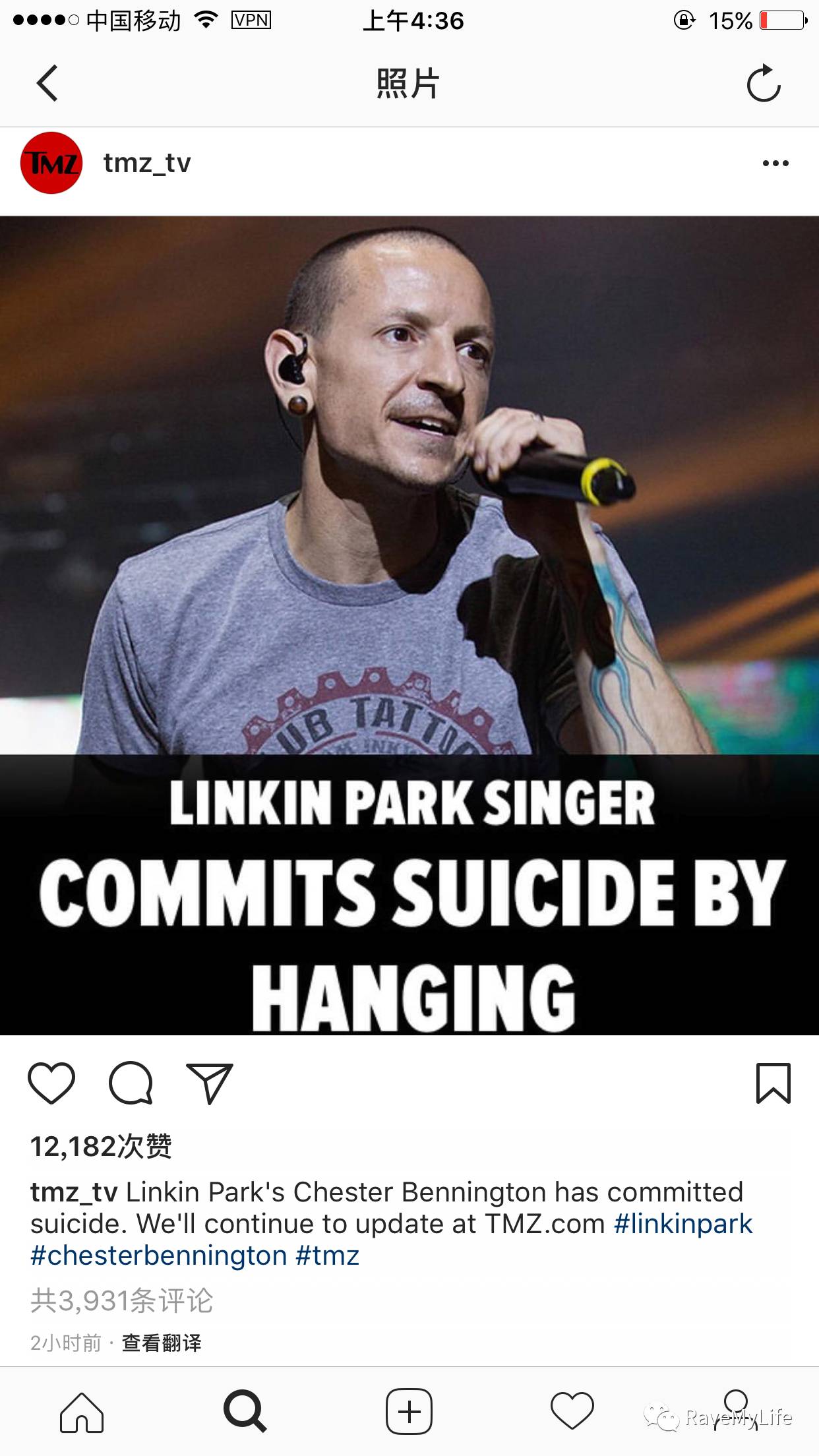 据外媒报道,20日晚上10时许,美国摇滚天团“林肯公园”主唱查斯特·贝宁顿(Chester Bennington)在美国加州洛杉矶的住宅内上吊自尽,他的尸体于当地时间周四上午9点之前在家中被发现,年仅41岁。