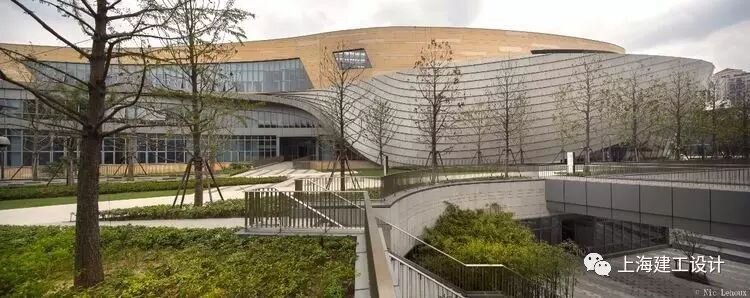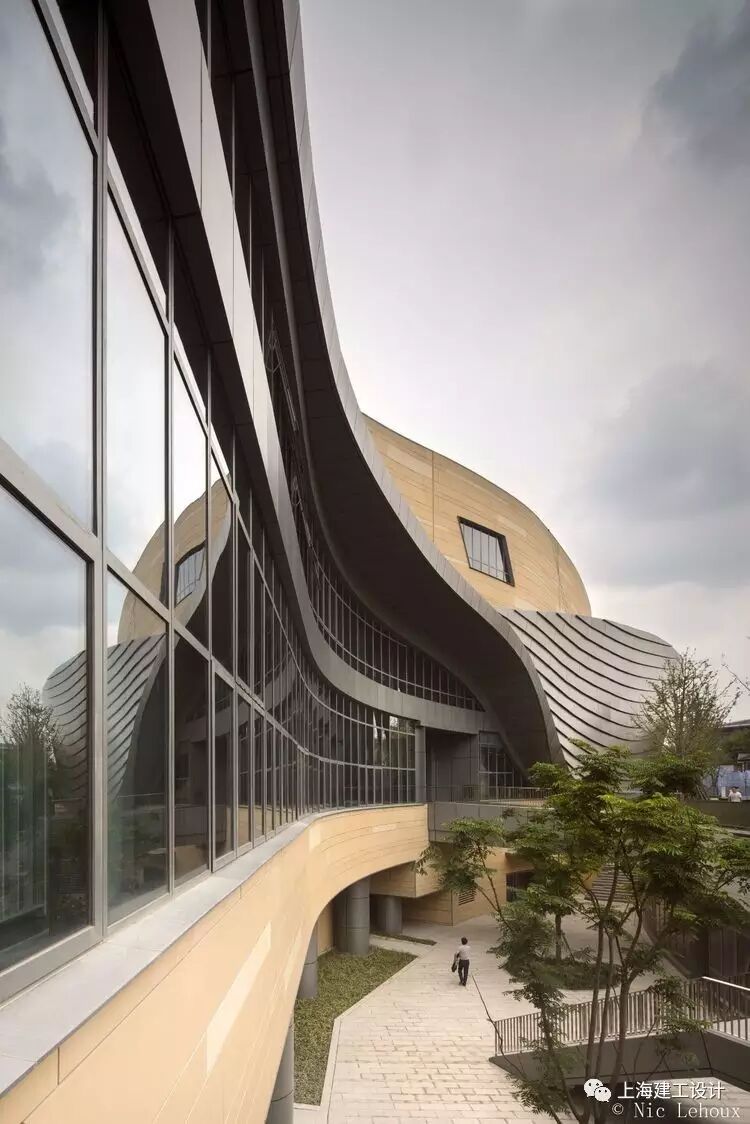 2号楼剧场外立面由2700块双曲铝板组成,成就了整个建筑的灵动之美