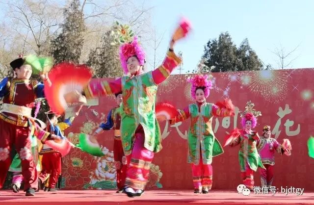 看过祭地表演,再赏民俗大戏。辽宁盖州的高跷、河北石家庄的花脸社火、吉林延吉的朝鲜族象帽舞、河南原阳的威风锣鼓等8支非物质文化遗产表演队,在火爆热烈的“民间花会”呈现地方特色。