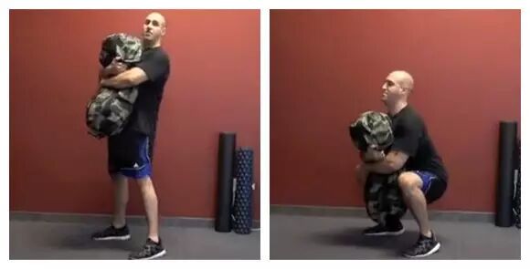 1.沙袋蹲(杠铃深蹲,高脚杯深蹲等等)4组x8次