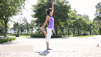 NO.3 单腿站立,一腿上翘触手,保持站姿30秒。这个动作比较难~