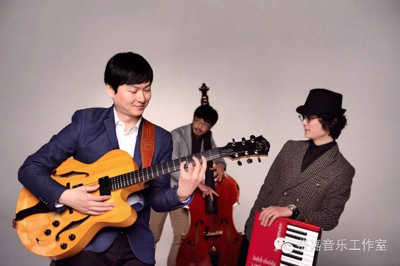 Johnny Fei trio band, it is composed of double bass, keyboar and guitar .