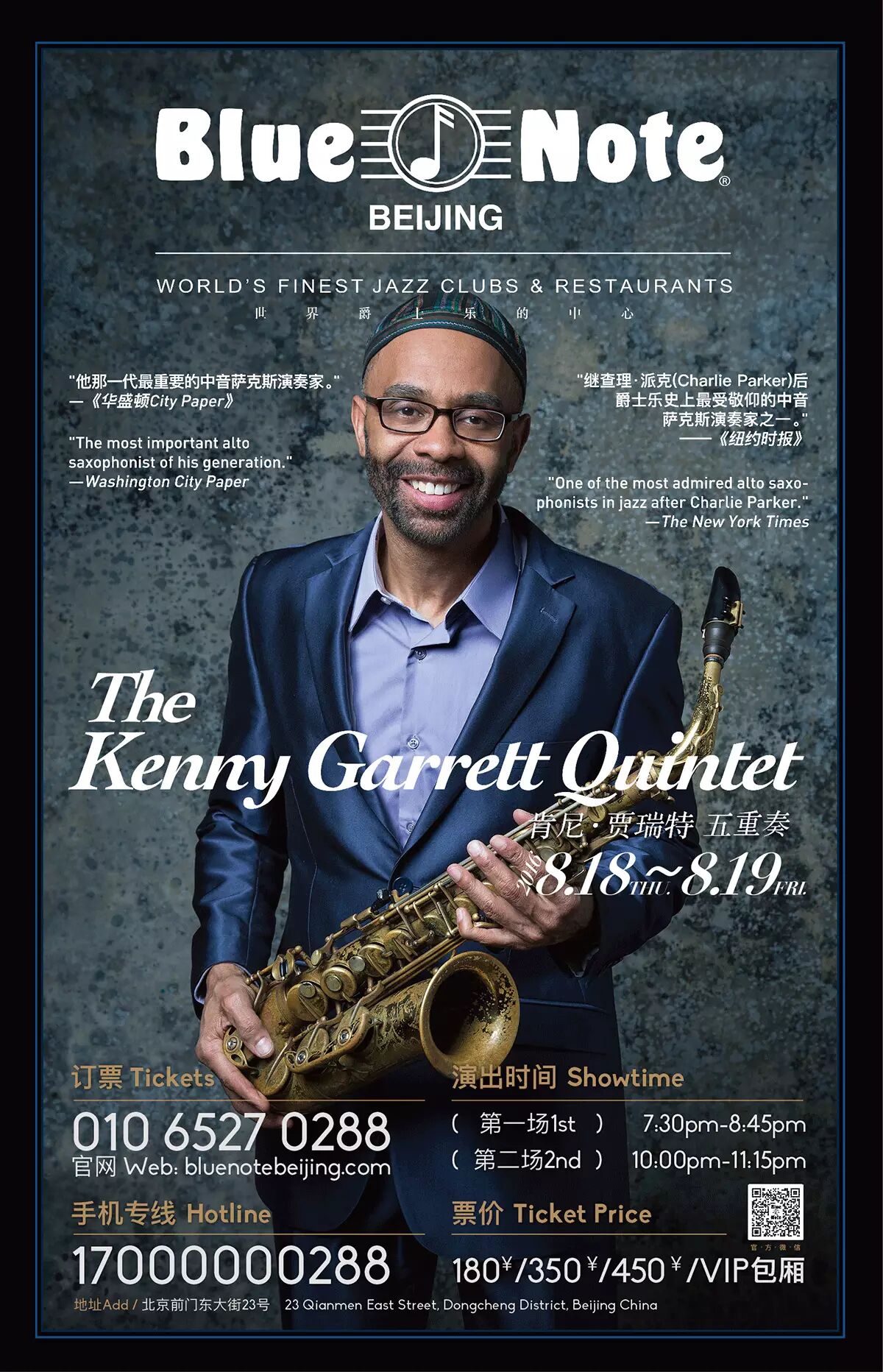 “The Kenny Garrett Quintet”8月18日对外首演场的演出时间为22点。