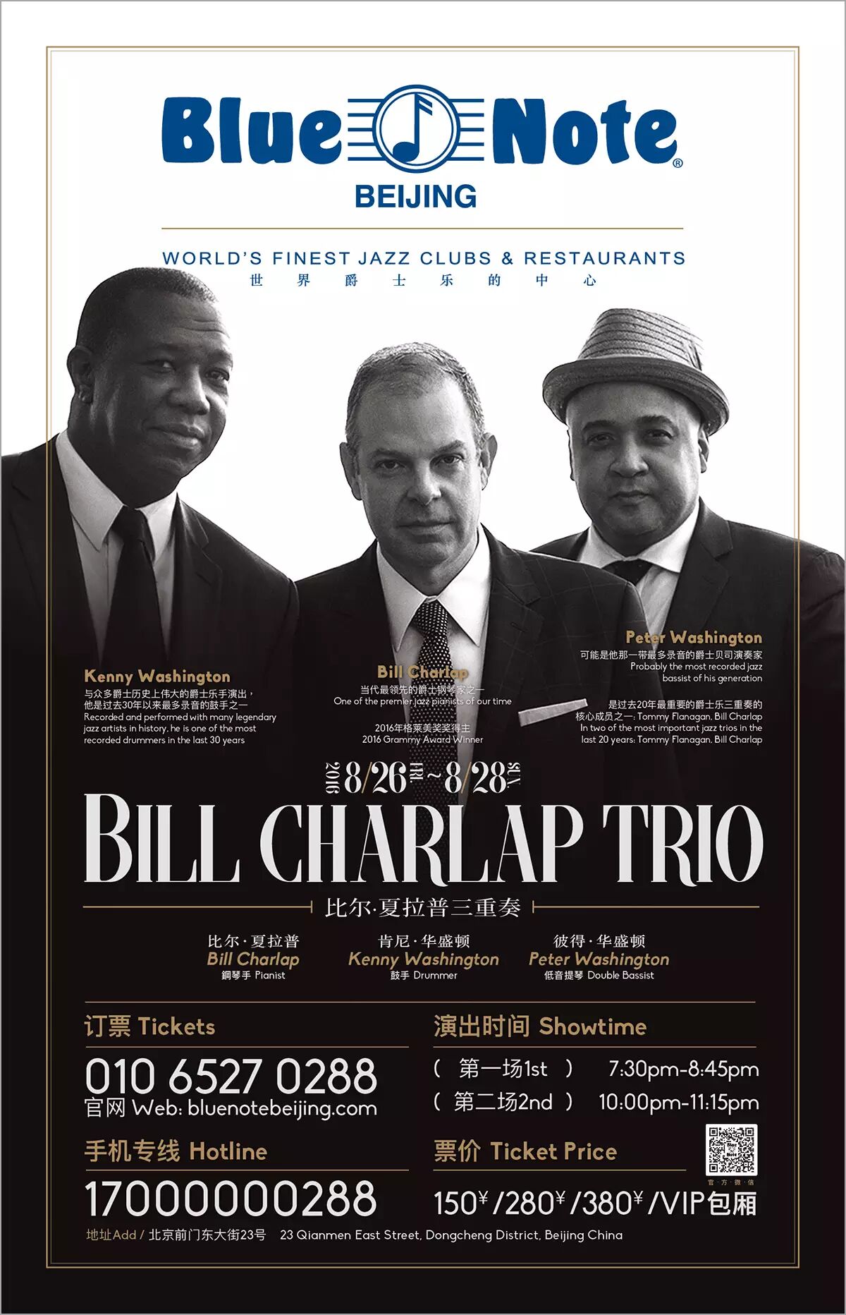 Bill Charlap曾与这个时代最出色的艺术家一起演出和录音。Bill Charlap三重奏获得过两次格莱美奖提名,这个组合被认为是最有国际声誉的爵士乐队之一。他们的新专辑《Notes From New York》于2016年4月在著名爵士厂牌Impulse!发行,获得了评论界的一片好评,包括爵士乐第一杂志《Downbeat》的五星评价。2015年,Bill Charlap作为唱片制作人及音乐家,凭《Tony Bennett 和 Bill Charlap——银色里衬:Jerome Kern的歌曲》(Tony Bennett & Bill Charlap-The Silver Lining: The Songs ofJerome Kern)一辑获得格莱美最佳传统流行专辑奖。他还是纽约“七月爵士”音乐节(Jazz in July Festival)的艺术总监,并为林肯中心、好莱坞碗、新泽西表演艺术中心及芝加哥交响乐中心制作演出。