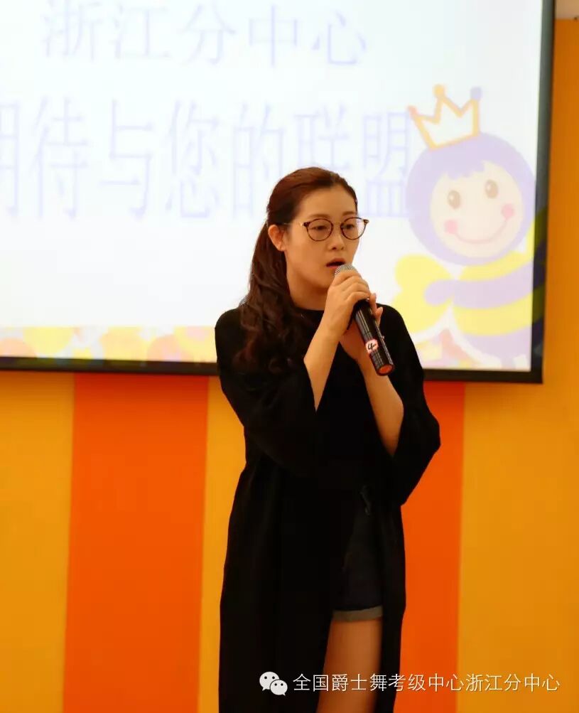 全国爵士舞考级中心浙江分中心主任倪静老师上台致发言词,简短的“需求论”演说讲到了在座各位艺校领导的心坎中。