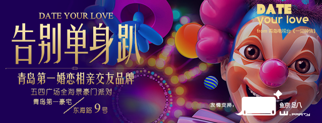 想恋爱,想脱单,想体验青岛第一“轰趴”的豪门魅力吗?现在机会来了,参与一见钟情线下品牌交友活动【告别单身趴】东海路九号,五四广场全海景豪门派对,320㎡私人俱乐部 。让我们白天派对,晚上约会。报名条件:1.爱玩;2.会玩;3.想玩。
