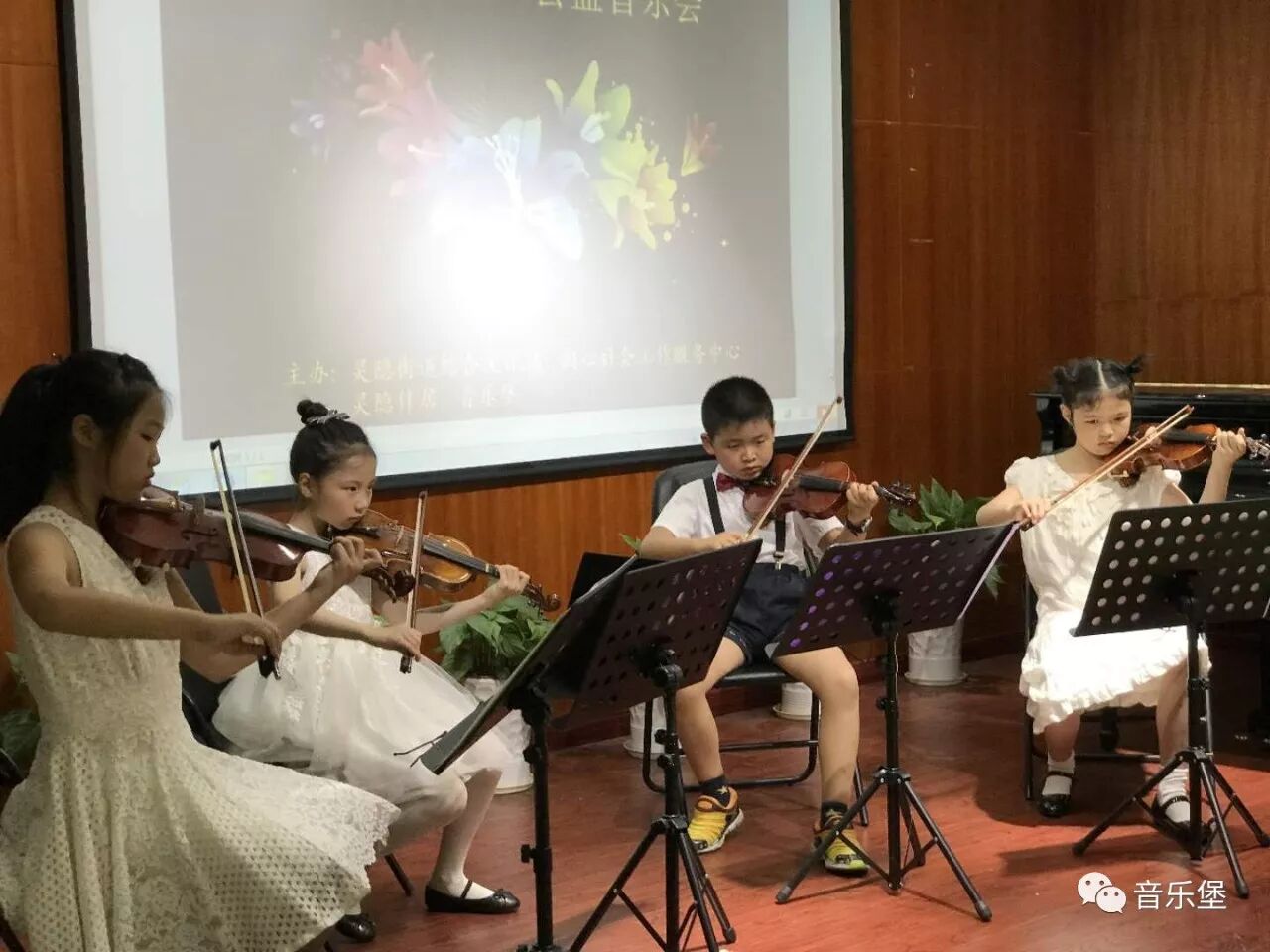 音乐堡小提琴乐队已经成立两年半的时间,每年都进行两期的乐队训练,小队员们在之前的音乐会中曾多次亮相,表演的曲子均为分声部的重奏曲,带给大家美妙和谐的视听感受。