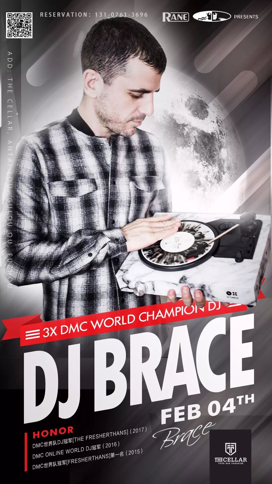 DJ BRACE2016年获得过DMC线上世界冠军,专辑Synesthasia曾被提名电子乐专辑Felix奖,Nostomania在2009年的最佳器乐专辑类别中赢得了JUNO奖.THE CELLAR年度阵容等你来蹦。点击此处查看详情