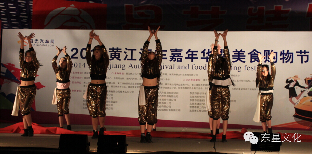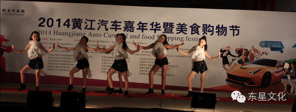 热烈祝贺东星文化艺术教育机构在黄江镇2014"首届汽车嘉年华暨美食购物节"大家乐主场晚会取得圆满成功!