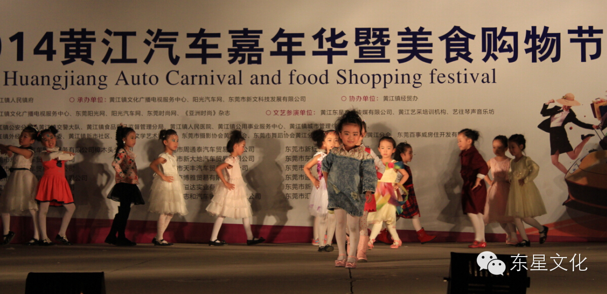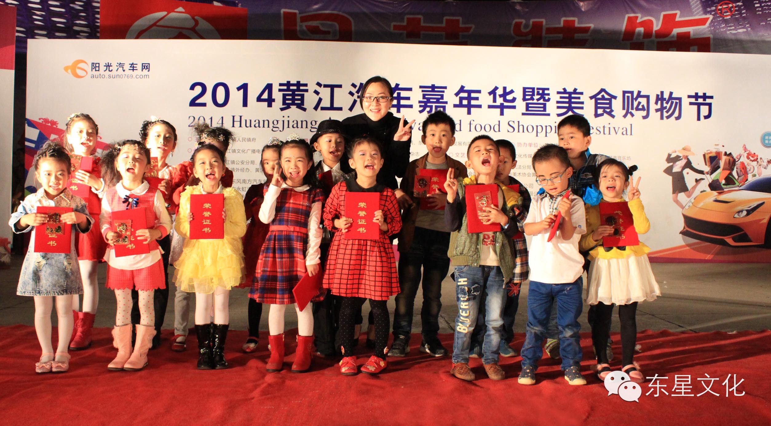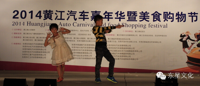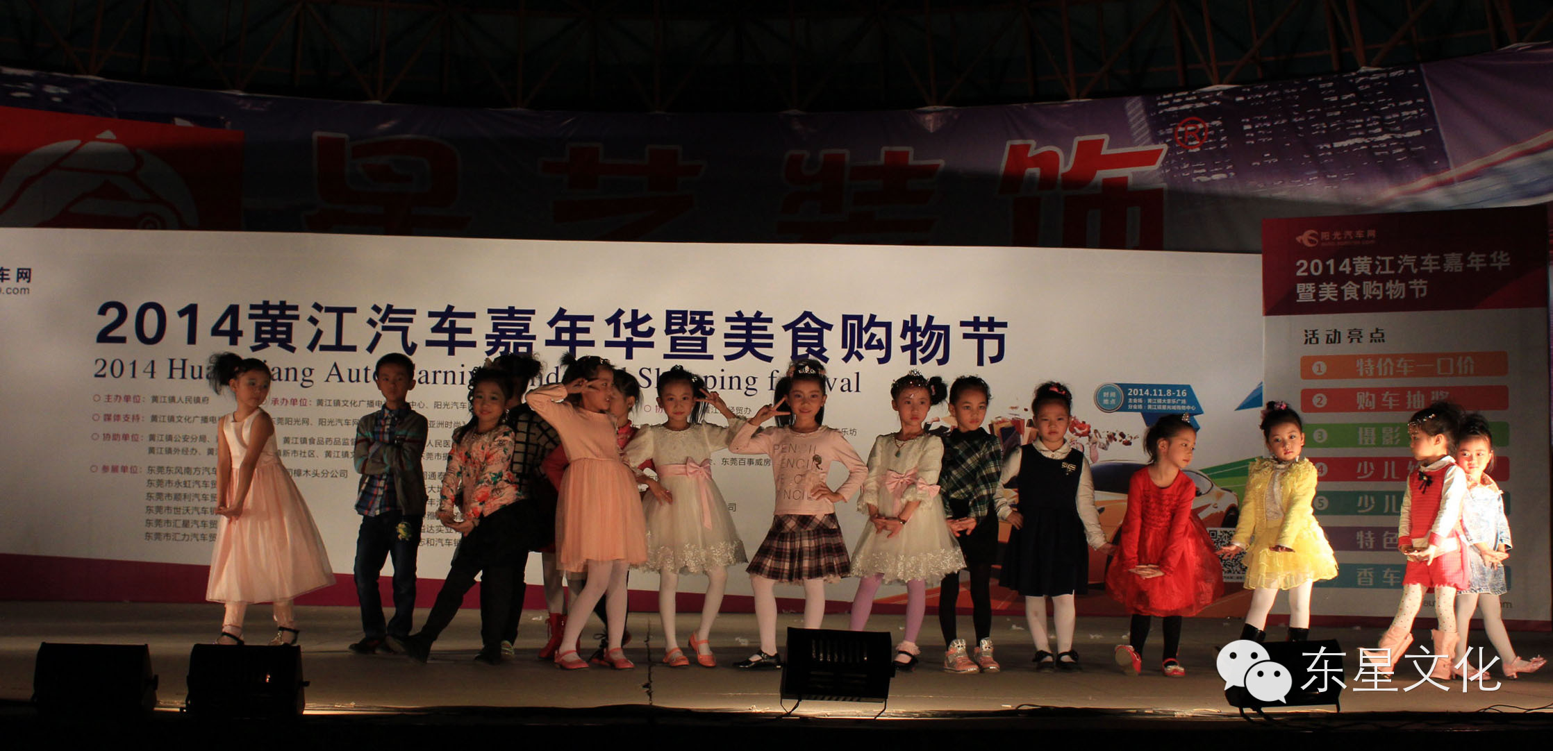 2014年11月15日东星的小演员们参加了黄江镇“首届汽车嘉年华暨美食购物节”晚会演出!